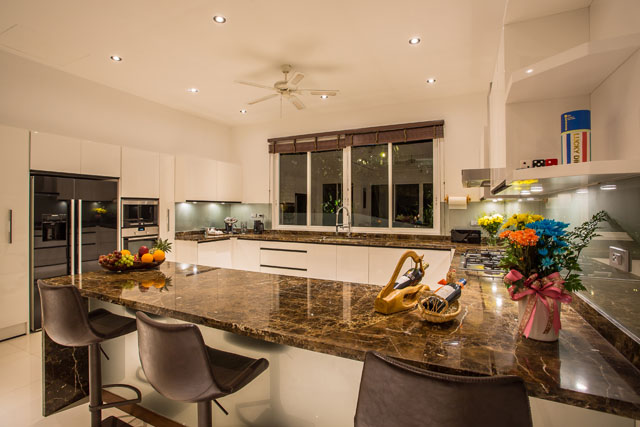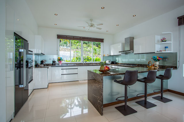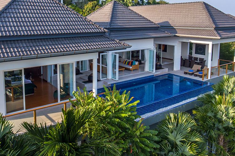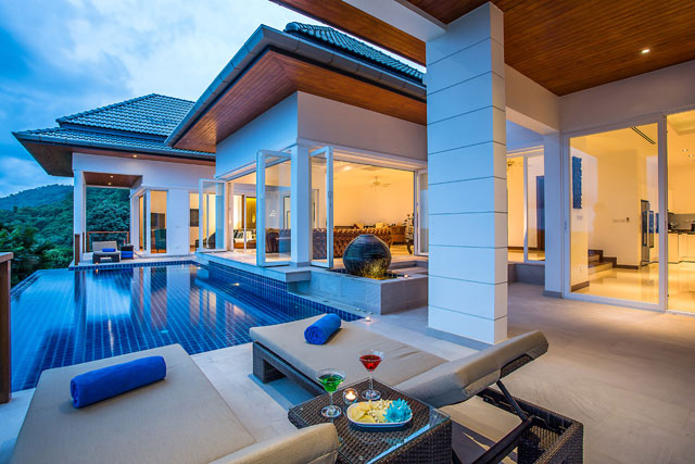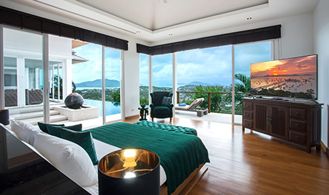 DUSIT is located at the forefront of the Baan Sawan project overlooking Rawai and Nai Harn beaches as well as a tropical canopy below. Comprised of two levels as well as a service floor, the villa includes 4 bedrooms with en-suite bathrooms, a fully equipped European kitchen, living and dining areas, games and home theatre rooms as well as an infinity pool. The villa is gated with plenty of parking spaces. Staff quarters and a service area are situated in the service floor.